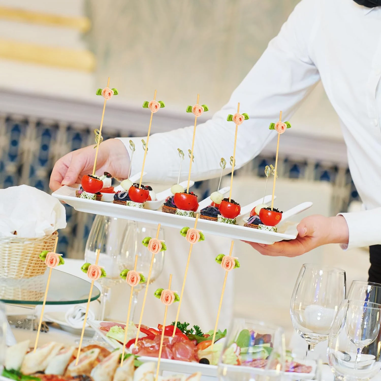 100pcs Disposable Long Flower Sticks