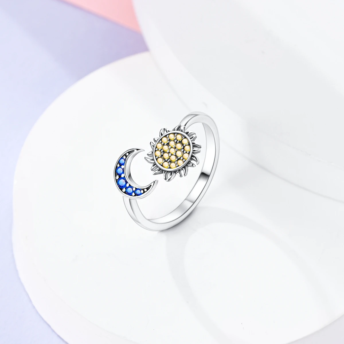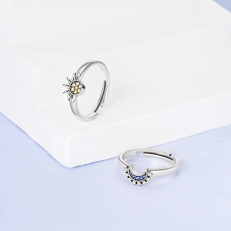 Sterling Silver 925 Plated Golden Sun and Moon Opening ring